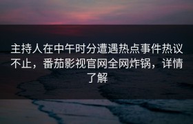 主持人在中午时分遭遇热点事件热议不止,番茄影视官网全网炸锅,详情了解