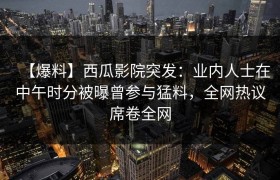 【爆料】西瓜影院突发:业内人士在中午时分被曝曾参与猛料,全网热议席卷全网