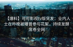昨晚,一则关于可可影视TV版的爆料瞬间引发了网络上的轰动。爆料的核心内容是:有业内人士在不久前被曝曾...